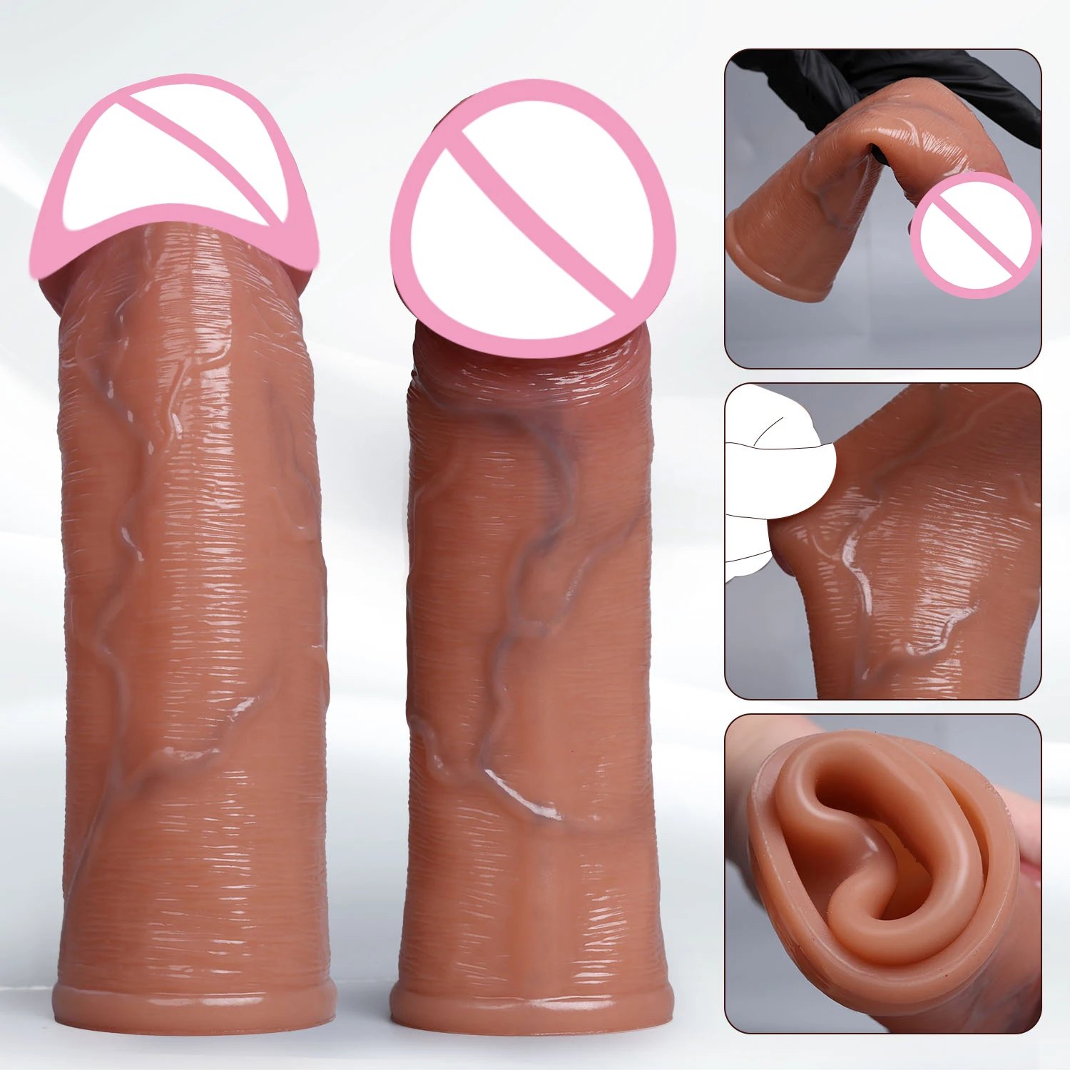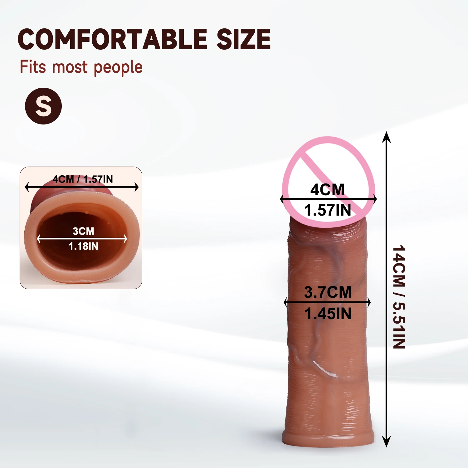 【Premium Quality & Safe Materials】: Our reusable penis sheath is carefully crafted from body-safe liquid silicone, ensuring a skin-friendly and lifelike experience. Made with attention to detail, it vividly reproduces the natural look, veins and colors of a penis. The soft touch of the silicone feels just like real skin.