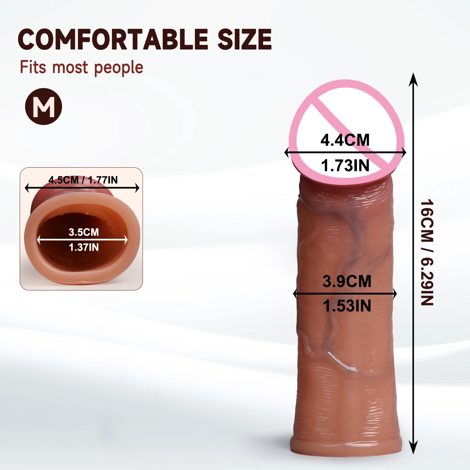 【Size Enhancement & Realistic Texture】: The Real penis sleeve extender is not only a 1.5 inch extension, but also a 30% boost in size penis enlarger and provides you with a larger penis head. Provides deeper penetration and enhanced stimulation to your lover. It makes every intimate moment more satisfying and exciting.