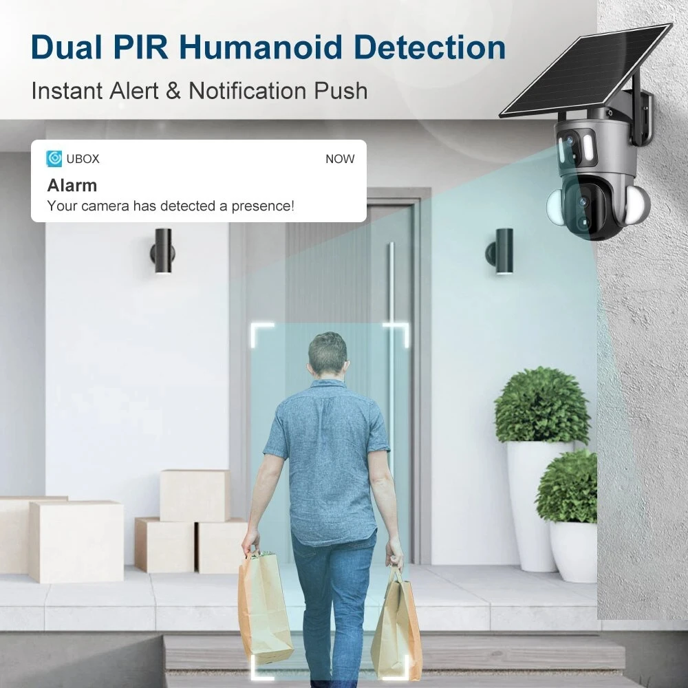 Newly 2K 4MP Ubox APP WIFI 4G SIM Card GSM LTE PTZ CCTV Solar Dual Lens 4G Camera
