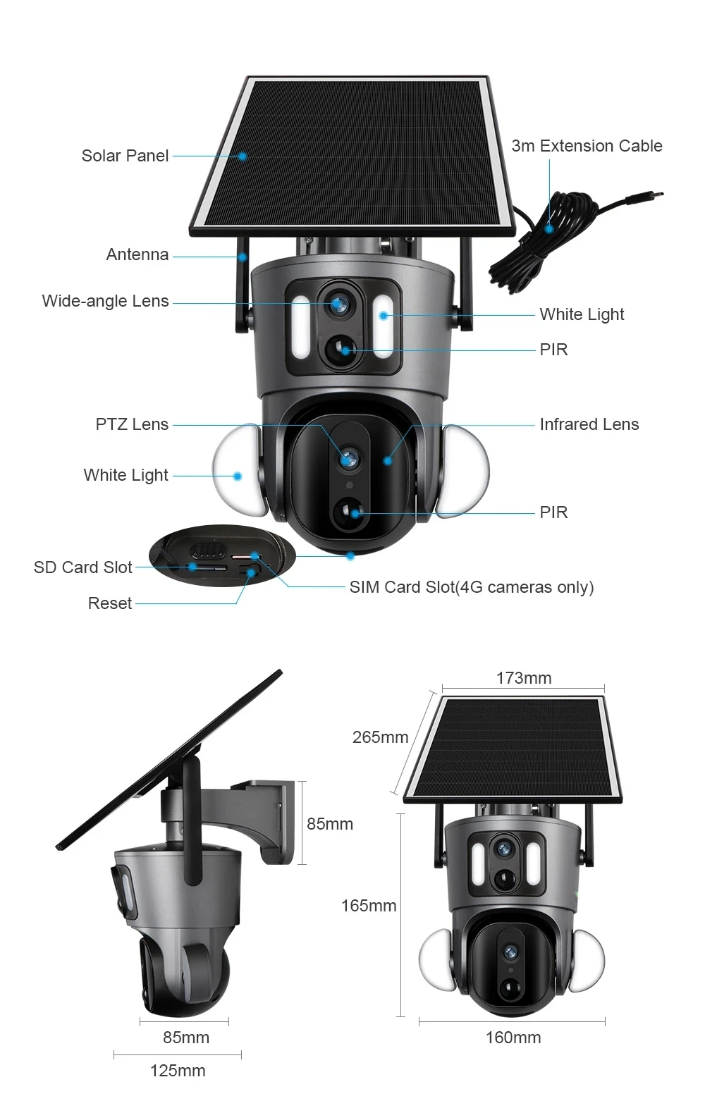 Newly 2K 4MP WIFI 4G SIM Card GSM LTE PTZ CCTV Solar Dual Lens 4G Camera